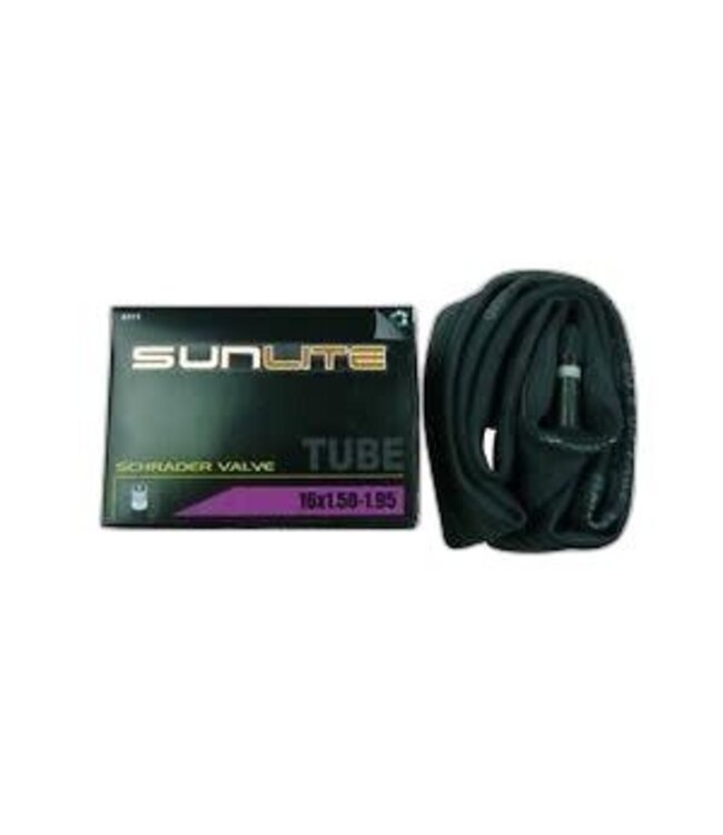 The SUNLITE UTILIT 16x1.50-1.95 Schrader valve tube is a reliable choice for cyclists looking for durability and performance. Designed for standard 16-inch tires, it features a smooth valve stem and a removable core for easy maintenance.