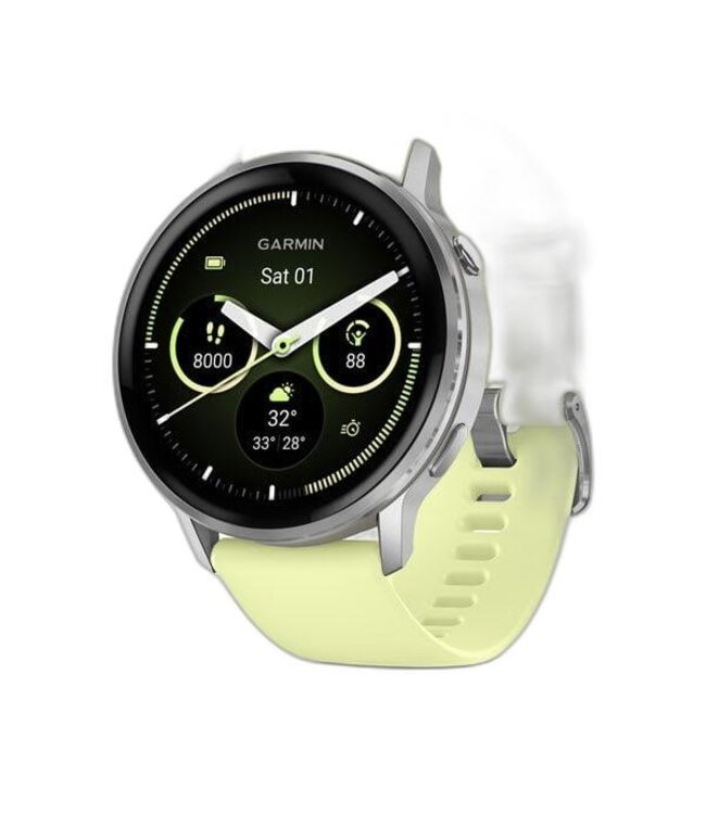 The Garmin Venu® 4 is a sophisticated smartwatch designed for those who value both form and function. This model features a sleek 45 mm silver case paired with a vibrant citron silicone band, making it both a stylish and practical choice for everyday wear. The watch is perfect for fitness enthusiasts and tech-savvy users alike, offering a range of advanced features to enhance your daily routine.
