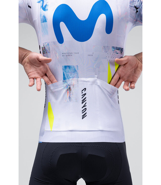 The Gobik Nexflow Short Sleeve Jersey for Men, part of the Movistar Team collection, is tailored for professional performance. Designed with aerodynamics in mind, its streamlined, minimalist structure optimizes airflow, reduces drag, and maximizes speed. The jersey features bonded finishes that eliminate traditional seams, ensuring a lightweight and frictionless experience.
