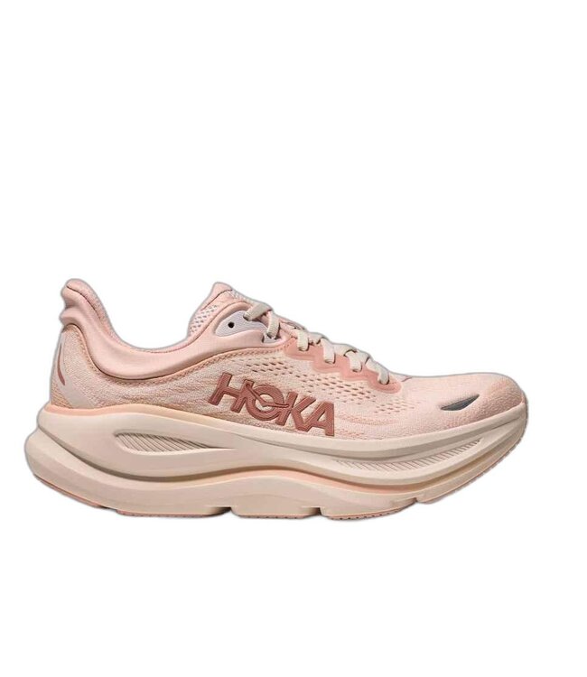 The Hoka W Bondi 9 represents the pinnacle of ultra-cushioned running shoes, designed to provide maximum comfort for daily miles. This updated model features an elevated stack height and a new premium foam midsole, ensuring a soft and resilient experience synonymous with the Bondi series. With a 3D-molded collar and a structured mesh upper, it offers optimal breathability and durability.