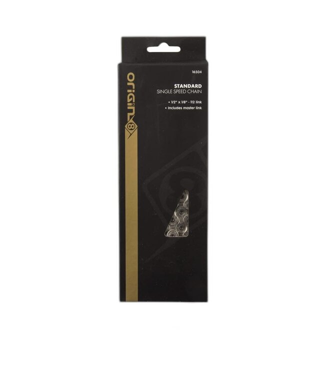 The Origin8 Standard Chain is a high-quality bicycle chain designed for durability and performance. With a 1/2x3/32 size and 116 links, it's perfect for single-speed bikes, ensuring a smooth and reliable ride.