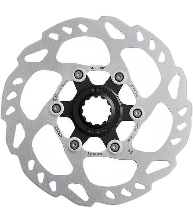 The Shimano SLX SM-RT70-SS Disc Brake Rotor offers exceptional braking performance for all riding conditions. This 140mm rotor utilizes a center-lock system for secure and straightforward installation.