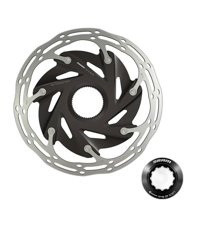 The SRAM CenterLine XR Rotor, model ID RT-CLX-R-A1, is engineered for optimal performance with SRAM's eTap AXS™ drivetrain. This rotor is specifically crafted for road biking, ensuring quiet and consistent braking at every stop.