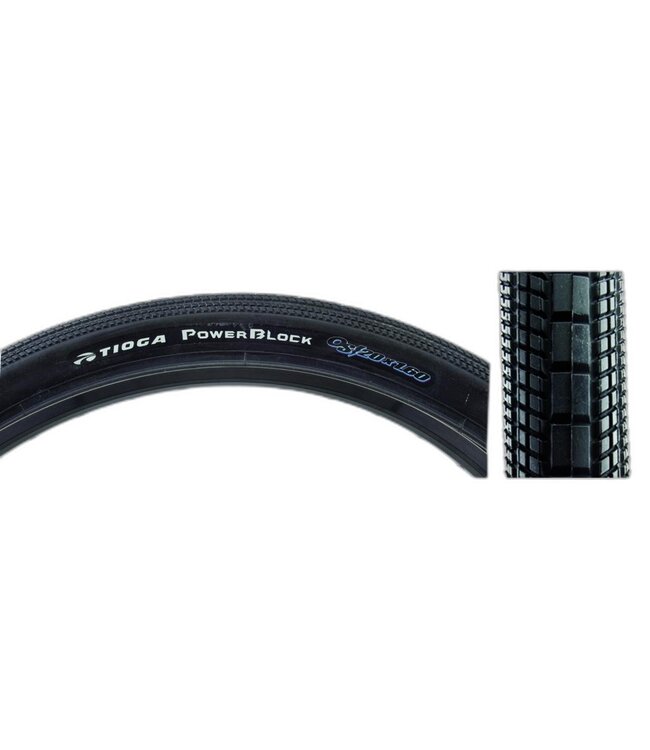 The Tioga PowerBlock OS tire is designed for BMX enthusiasts who value performance and durability. This tire boasts a smooth tread for low rolling resistance, making it an excellent choice for those looking to efficiently transfer pedal power and enhance lateral motion. Made with UTC Rubber (Ultimate Traction Compound), it ensures long-lasting use.